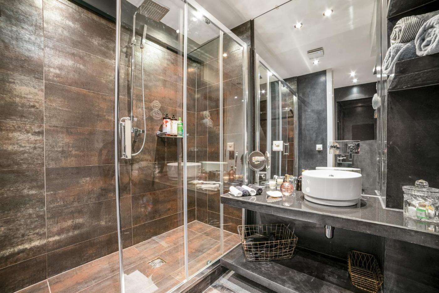 One-Bedroom Apartment. This spacious apartment consists of 1 living room, 1 separate bedroom and 1 bathroom with a walk-in shower and free toiletries. Guests can make meals in the kitchen that is equipped with a stovetop, a refrigerator, a dishwasher and kitchenware. The apartment provides a washing machine, a private entrance, a tea and coffee maker, a flat-screen TV with cable channels, as well as city views. The unit offers 2 beds.