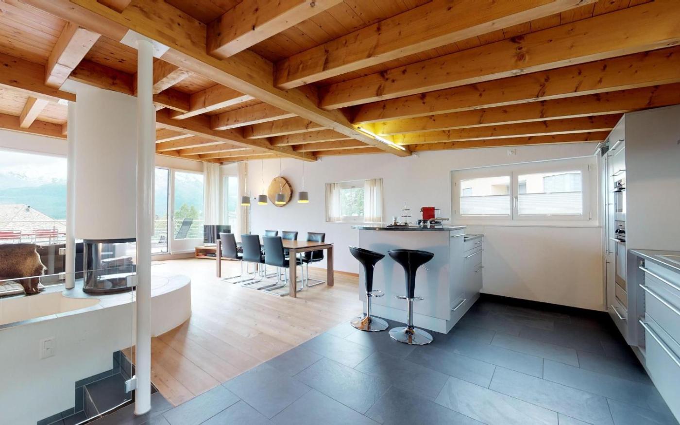 Penthouse Apartment. The fireplace is a top feature of this apartment. Boasting 4 bedrooms, this spacious apartment has 2 bathrooms with a bath, a seating area and terraceyou can relax. Guests can make meals in the kitchen that features a stovetop, a refrigerator, a dishwasher and kitchenware. The apartment features a TV with cable channels, a washing machine, a coffee machine, a wardrobe as well as mountain views. The unit offers 4 beds.